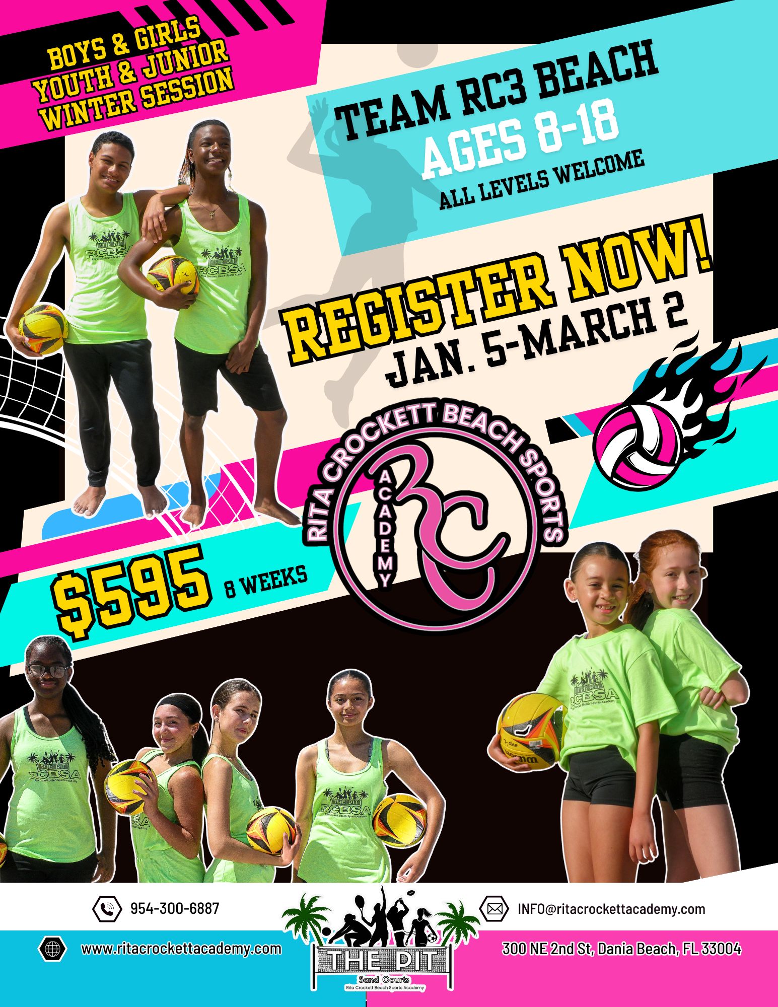 RC3 (Rita Crockett Beach Sports Academy) is South Florida’s premier year-round training program for athletes ages 8-18 who are passionate about beach volleyball. Led by Olympic medalist Rita Crockett, our club offers high-energy, structured training environments where players grow as athletes and teammates.